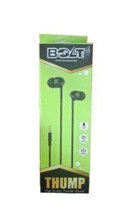 Introducing the Bolt Thump Box Earphone – a compact and powerful audio companion designed to deliver an immersive sound experience. Crafted with precision, these earphones provide clear and dynamic audio, enhancing your music and calls. The ergonomic design ensures a comfortable and secure fit, making them ideal for daily use and active lifestyles. The tangle-free cable adds convenience, while the in-line controls allow easy management of calls and music playback. With universal compatibility, the Bolt Thump Box Earphone offers a reliable and stylish audio solution for your on-the-go needs. Immerse yourself in superior sound quality with these earphones, where portability meets exceptional audio performance.
