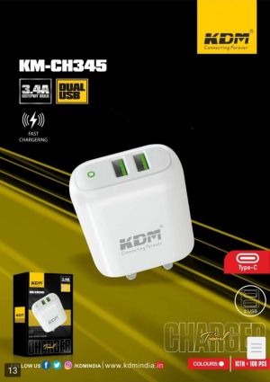 The KDM KM-CH345 3.4A Type-C Charger is a high-powered and efficient charging solution designed for Type-C compatible devices. With a robust 3.4A output, it delivers fast and reliable charging for various smartphones and devices using the Type-C connector. The compact design ensures easy portability, making it suitable for everyday use at home or on the go. Equipped with advanced charging technology, the KDM KM-CH345 offers a swift and dependable charging experience. Whether you're commuting, traveling, or simply need a reliable charger, this product provides a straightforward and effective solution to keep your Type-C-compatible devices charged and ready for use.