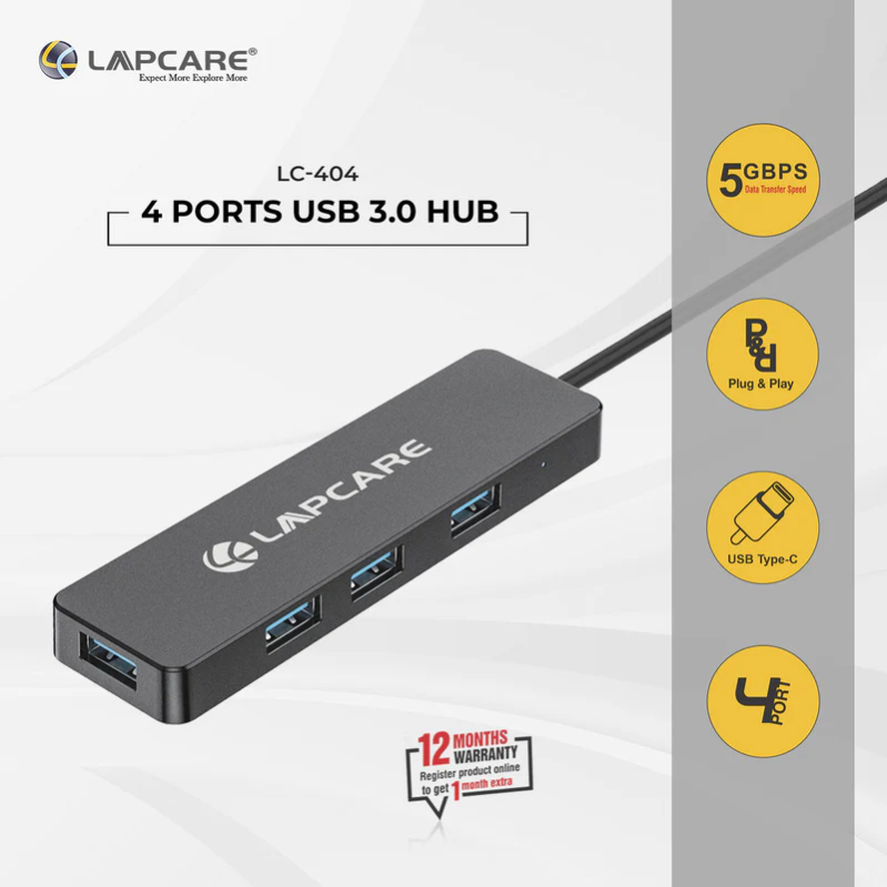 In summary, the Lapcare LC-404 3.0 USB Hub is a practical and efficient accessory for users seeking expanded USB connectivity. Its high-speed data transfer, compact design, and universal compatibility make it an essential tool for connecting multiple USB devices to a single host computer or laptop.