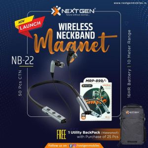 Introducing the NextGen NB-22 Bluetooth Neckband – a stylish audio companion designed for modern lifestyles. This sleek neckband seamlessly integrates advanced Bluetooth technology, offering a convenient and wire-free audio experience. The NB-22 is crafted for comfort and features easy-to-use controls, making it perfect for those on the go. Immerse yourself in clear, high-quality sound while staying effortlessly connected. Elevate your audio journey with the NextGen NB-22, where contemporary design meets reliable wireless performance, providing a stylish and enjoyable way to enhance your music and calls.