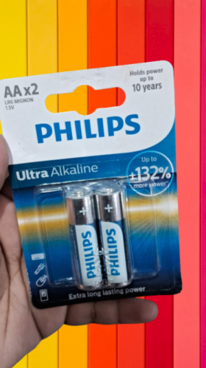 Philips AA x2 Pencil Battery 2 Pcs is a package containing two AA-sized alkaline batteries by Philips. These batteries are commonly used in a variety of electronic devices such as remote controls, toys, and small gadgets. They offer reliable power for everyday use and are designed for long-lasting performance. The "pencil battery" term is a colloquial reference to cylindrical batteries, and the AA size indicates their specific dimensions.