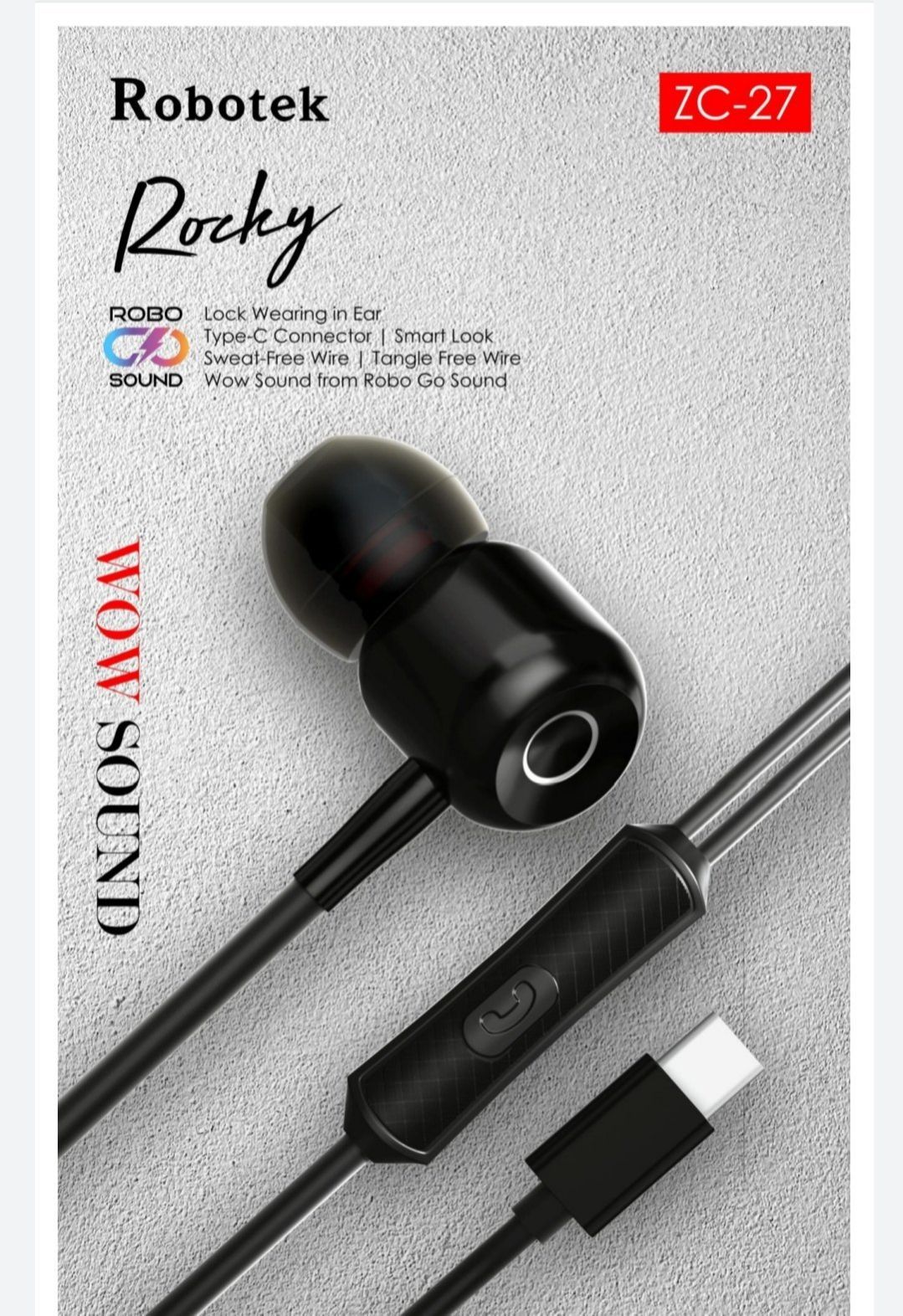 Introducing the Robotek ZC-27 Type C Earphone – a fusion of innovation and audio excellence. These earphones are designed with a convenient Type-C connector, ensuring compatibility with modern devices for hassle-free connectivity. The Robotek ZC-27 delivers a powerful audio experience with its advanced drivers, producing rich and immersive sound quality for your music and calls.