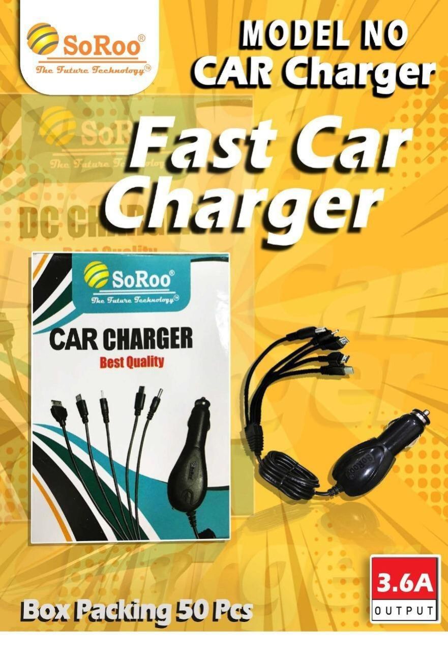 The SoRoo 3.6A 5-in-1 Car Charger is a versatile and powerful charging solution designed for use in cars. With its 5-in-1 design, this car charger provides multiple USB ports and DC connectors, allowing you to charge various devices simultaneously. The total output of 3.6A ensures efficient and fast charging for devices such as smartphones, tablets, or other electronics. The compact and user-friendly design makes it convenient for charging on the go, making it suitable for road trips, daily commutes, or any car journey. The SoRoo 3.6A 5-in-1 Car Charger is a practical and efficient accessory for users who require a versatile charging solution for multiple devices while on the road.