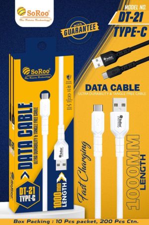 The SoRoo DT-21 Type C Cable is a reliable and versatile charging and data transfer cable designed for devices that use the Type-C connector. With its durable construction, this cable ensures steady and dependable charging for smartphones and other gadgets featuring the Type-C port. The cable is also capable of supporting data transfer between devices, adding to its overall functionality. The Type-C connector is widely compatible with modern devices, making the SoRoo DT-21 Type C Cable a practical and efficient solution for users seeking a dependable charging cable for their Type-C devices.