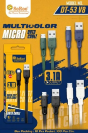 The SoRoo DT-53 3.1A V8 Cable is a high-performance charging cable designed for V8-compatible devices. With a robust 3.1A output, it delivers fast and efficient charging, ensuring your devices are powered up quickly. The DT-53 cable combines durability with a sleek design, providing both reliability and style in one accessory. Upgrade your charging experience with the SoRoo DT-53 3.1A V8 Cable for a seamless and speedy power solution.