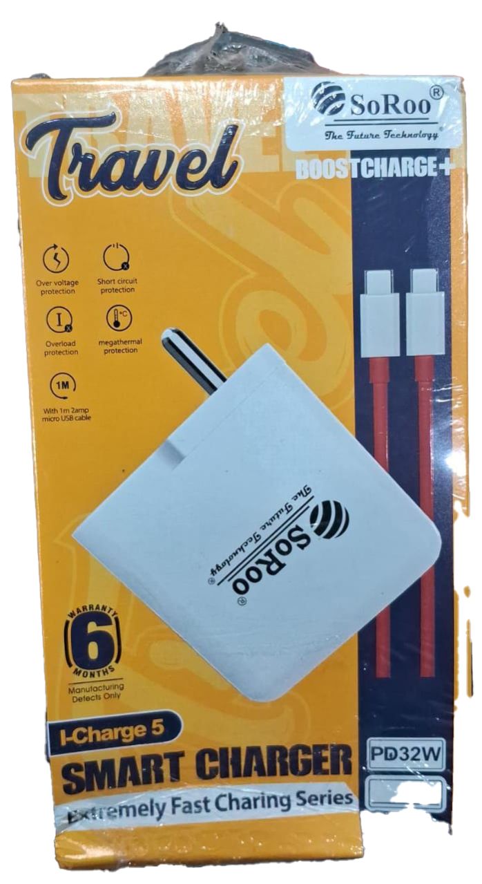 The Soroo I-Charger 5 PD32 Type-C Charger is a high-powered and efficient charging solution designed for devices that support Power Delivery (PD) and Type-C connectivity. With an impressive 32W power output, this charger delivers fast and reliable charging for a variety of devices, including smartphones, tablets, and other gadgets. The Type-C connector ensures versatile compatibility with modern devices supporting this interface. The compact and portable design makes it suitable for use at home, in the office, or while on the go. Whether you need to charge your smartphone quickly or power up other Type-C devices, the Soroo I-Charger 5 PD32 provides a robust and versatile charging experience.