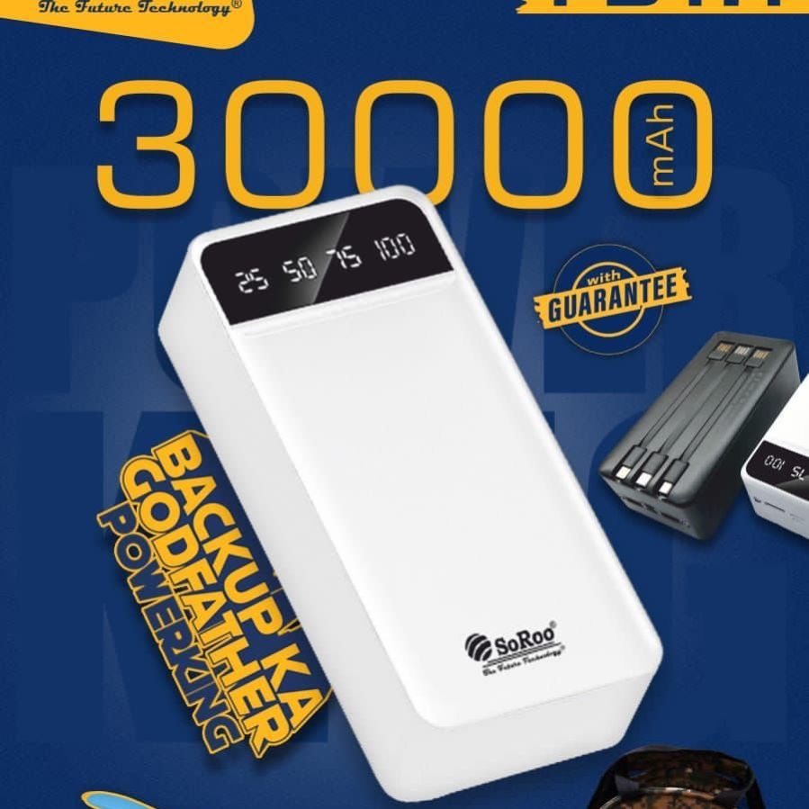 The SoRoo PB-180 30,000mAh PowerBank is a high-capacity and versatile portable charger, offering an extensive power supply for your devices. With its remarkable 30,000mAh capacity, it ensures ample power for multiple charges. The sleek and practical design enhances portability, making it convenient to carry with you. Equipped with advanced charging technology, the PB-180 ensures efficient and fast charging for a variety of devices. Whether you're on a long journey, commuting, or need a reliable backup power source, this powerbank provides a convenient and powerful solution to keep you connected and charged in any situation.