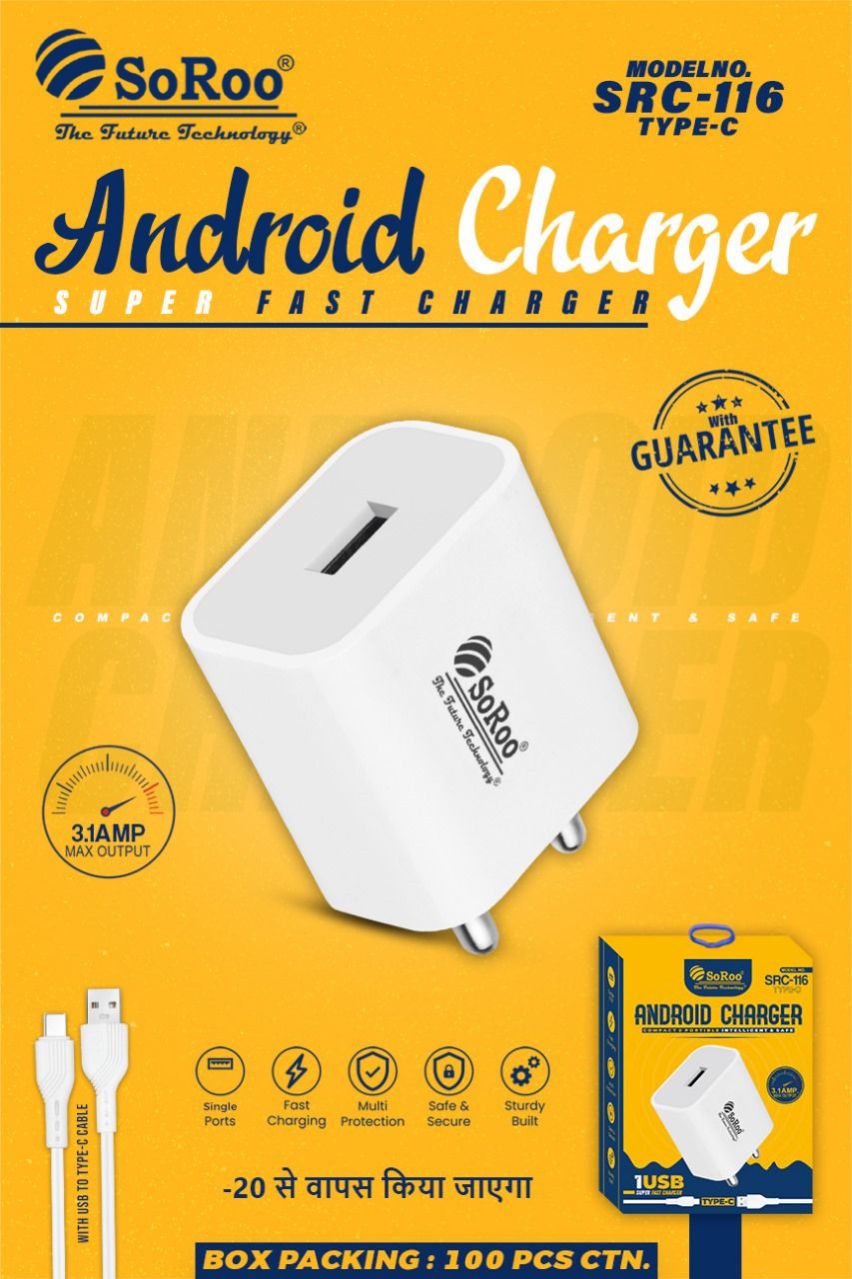 The SoRoo SRC-116 3.1A Charger is a high-powered and efficient charging solution designed for various devices. With a robust 3.1A power output, this charger delivers fast and reliable charging for smartphones, tablets, and other compatible gadgets. The dual USB ports allow simultaneous charging of multiple devices, providing added convenience. The compact and portable design makes it suitable for use at home, in the office, or while on the go. Equipped with advanced charging technology, the SoRoo SRC-116 ensures a swift and dependable charging experience. Whether you're charging your smartphone or other compatible devices, this charger provides a versatile and efficient solution for users who value both power and convenience.