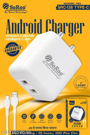 The SoRoo SRC-138 3.4A Type-C Charger is a high-powered and efficient charging solution designed for Type-C compatible devices. With a robust 3.4A output, it delivers fast and reliable charging for various smartphones and devices using the Type-C connector. The compact design ensures easy portability, making it suitable for everyday use at home or on the go. Equipped with advanced charging technology, the SoRoo SRC-138 offers a swift and dependable charging experience. Whether you're commuting, traveling, or simply need a reliable charger, this product provides a straightforward and effective solution to keep your Type-C-compatible devices charged and ready for use.
