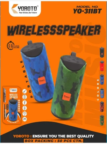 The Yoroto YO-311BT Bluetooth Speaker is a compact and versatile audio companion that delivers impressive sound in a portable package. With Bluetooth connectivity, this speaker seamlessly pairs with your devices, providing a wireless and convenient audio experience. Despite its small size, the YO-311BT produces clear and vibrant sound quality, enhancing your music enjoyment. The sleek and modern design adds a touch of style to any setting, making it suitable for various environments. The built-in rechargeable battery ensures extended playtime, making it perfect for on-the-go use. Elevate your audio experience with the Yoroto YO-311BT Bluetooth Speaker — a blend of portability and powerful sound in one compact device.