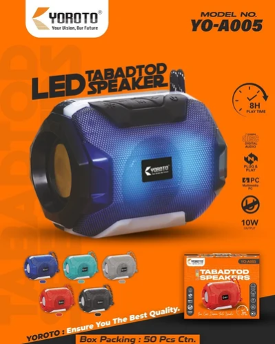 The Yoroto YO-A005 Bluetooth Speaker is a compact and stylish audio companion designed for portable music enjoyment. With Bluetooth connectivity, this speaker easily pairs with your devices, providing a wireless and convenient audio experience. Despite its small size, the YO-A005 delivers clear and dynamic sound, making it suitable for various settings. The sleek and modern design adds a touch of sophistication, while the built-in rechargeable battery ensures extended playtime for on-the-go use. The Yoroto YO-A005 Bluetooth Speaker is an ideal choice for those who seek a blend of style and functionality in their portable audio devices.